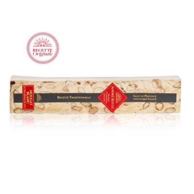 Composé de miel de lavande récolté sur les pentes du Mont Ventoux, et d’amandes de Provence, notre nougat blanc onctueux, soufflé, très tendre est fabriqué de façon artisanale à Sault en Provence.Sa recette est inchangée depuis son origine en 1887.