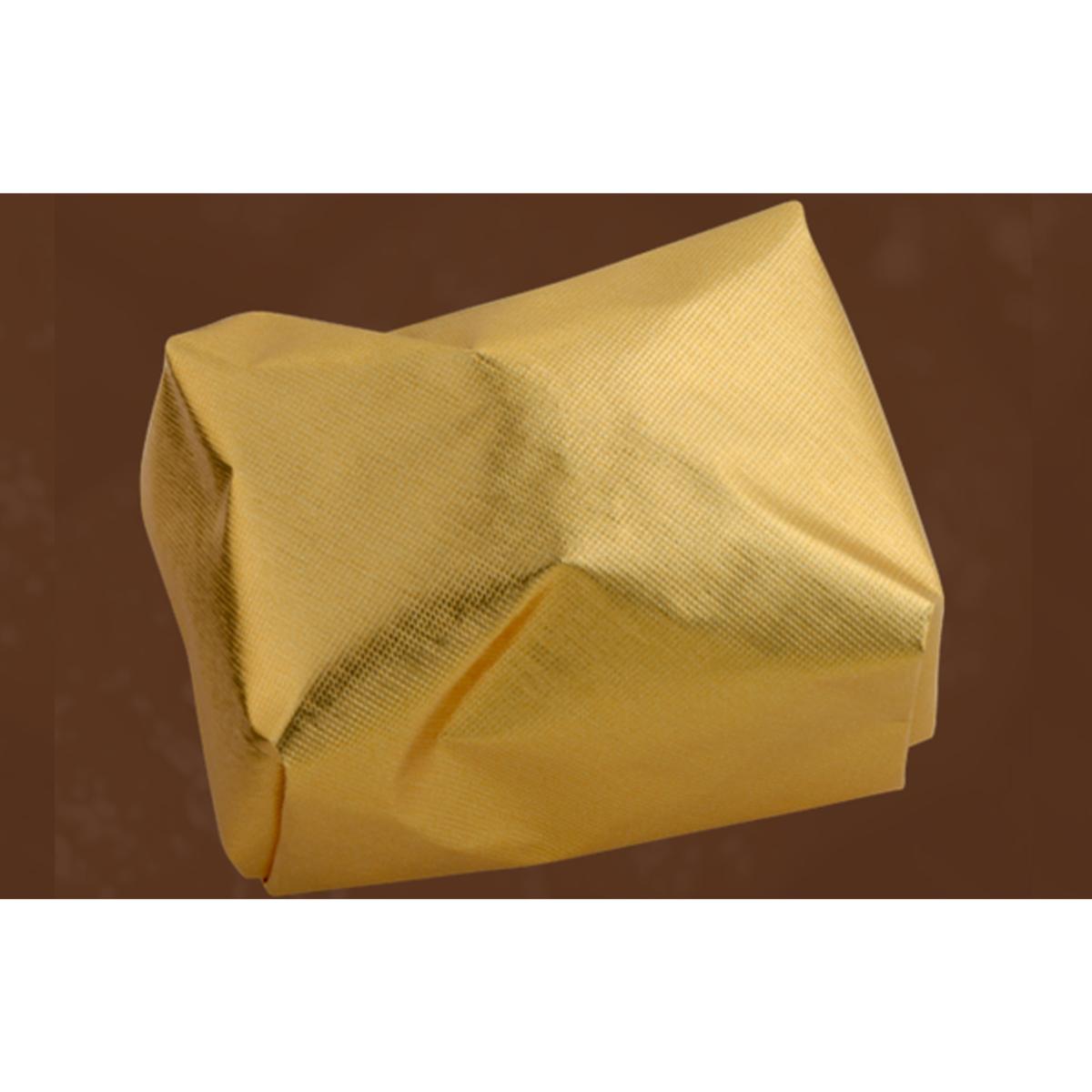 Posé sur une cartonnette dorée et enveloppé dans une feuille alu or.